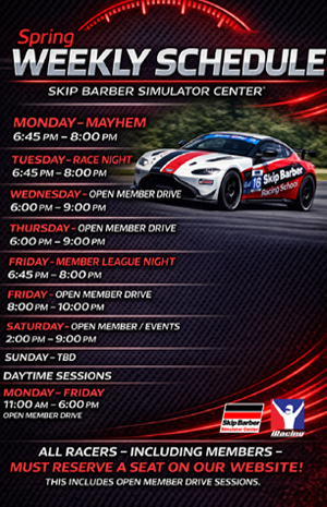 From casual seat time to high-intensity race events and structured leagues, the Sim Center creates a true racing ecosystem—where drivers can practice, compete, and improve in a dynamic, community-driven environment. With access to world-class tracks, detailed performance data, and expert guidance rooted in decades of racing instruction, Skip Barber Sim Center is more than just simulation—it’s a faster, smarter path to becoming a better driver.